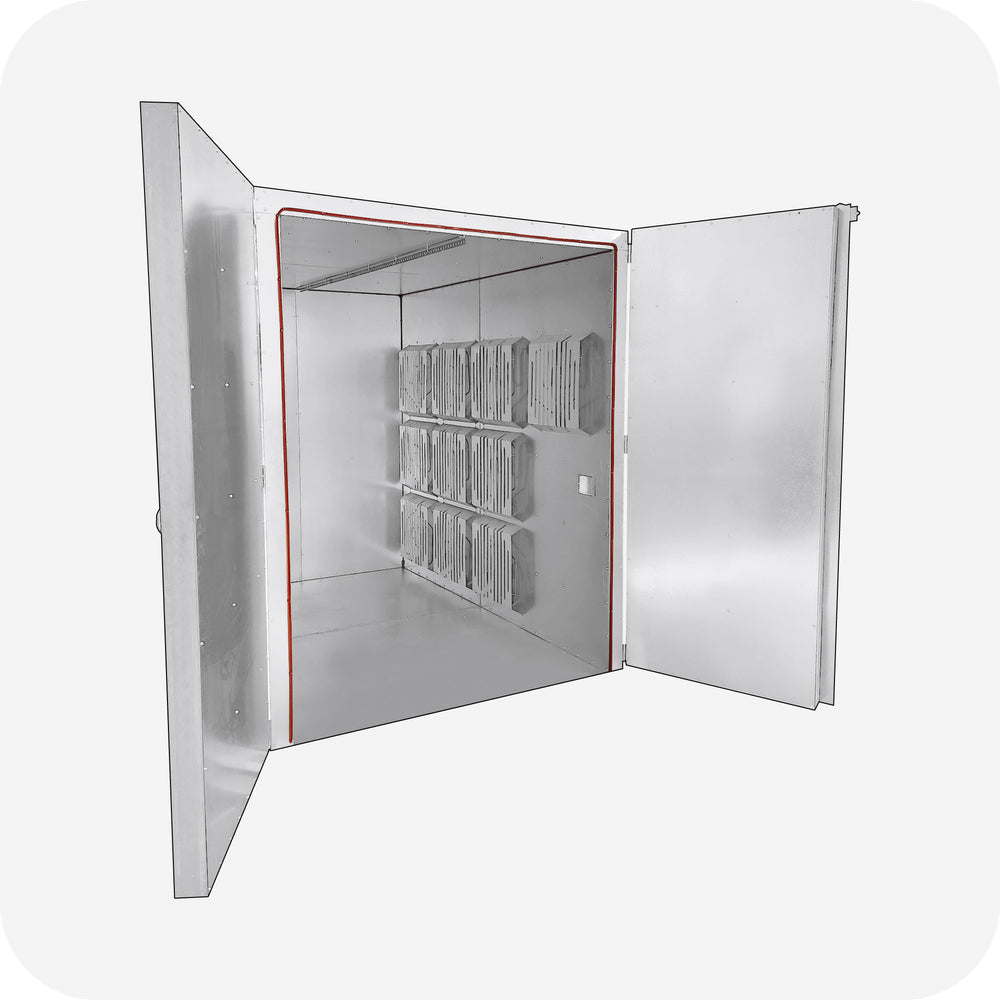 The LABS-687-GAS customizable curing oven is made in the US using G90 galvanized material to protect it from rust. It comes with a flat floor for rolling carts in and can be customized in several ways such as adding a blower fan, oven light, or choosing the oven color. This oven is capable of raising a material or part’s temperature to increase its mass. The use of heat is a must in the curing process and the oven must maintain this heat for a specific amount of time to produce the desired chemical reaction.