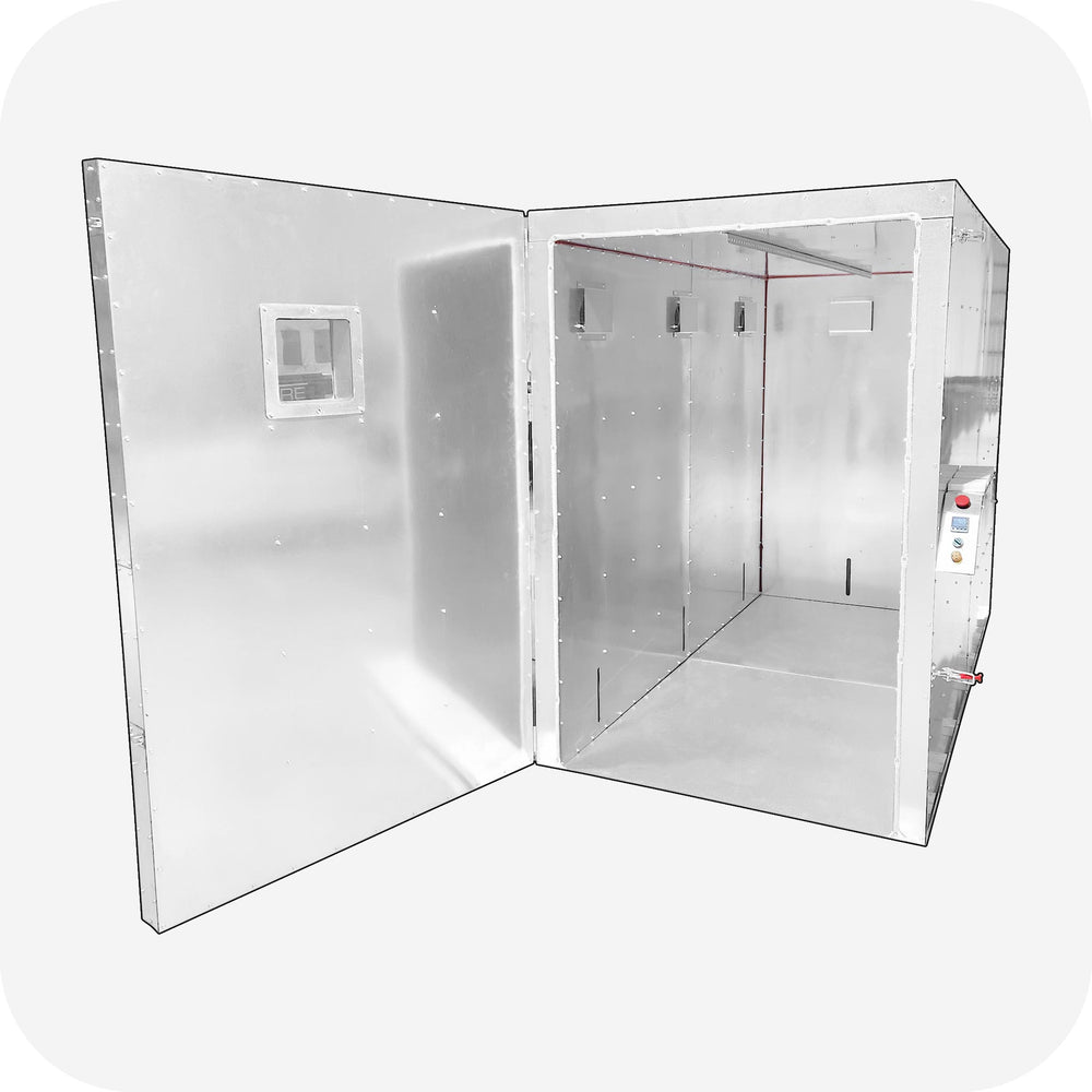 The LABS-486 customizable curing oven is made in the US using G90 galvanized material to protect it from rust. It comes with a flat floor for rolling carts in and can be customized in several ways such as adding a blower fan, oven light, or choosing the oven color. This oven is capable of raising a material or part’s temperature to increase its mass. The use of heat is a must in the curing process and the oven must maintain this heat for a specific amount of time to produce the desired chemical reaction.