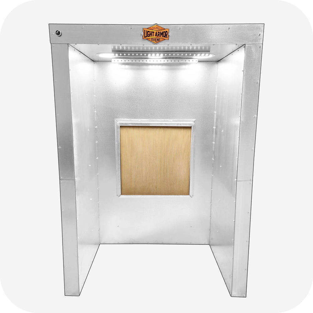 A spray booth is a piece of special equipment that encloses spray equipment and tools. It is designed to contain any vapor expelled during the spray application process. The spray process is part of finishing any materials with a metallic surface to avoid corrosion. An industrial spray booth must be fire-resistant and explosion-resistant to eliminate hazards for the workers performing the spray application. The LA325 Spray Booth from Light Armor is manufactured to deliver outstanding performance, reliability, and safety. Our high-quality spray booth is suited for various applications such as in the automotive, aerospace, woodworking, and manufacturing industries. Our paint spray booths meet global finishing standards to help businesses (our customers) achieve their desired results without compromising the safety of their workers. The use of spray booths ensures superior quality for coating results as the interior allows your workers to maintain the ideal temperature and conditions for the best quality spray results.